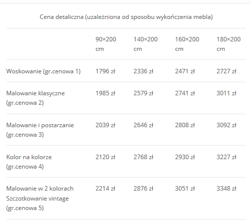 • Wymiary : 90 x 200 cm do 180 x 200 cm.