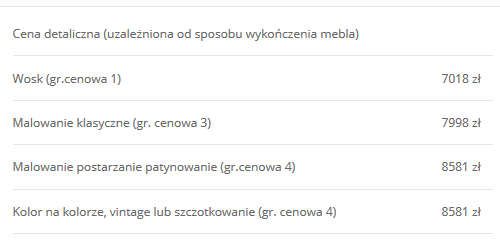Cena uzależniona od sposobu malowania, od 7018 do 8581 zł