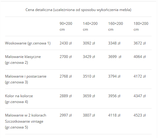 Cena detaliczna (uzależniona od sposobu wykończenia mebla)