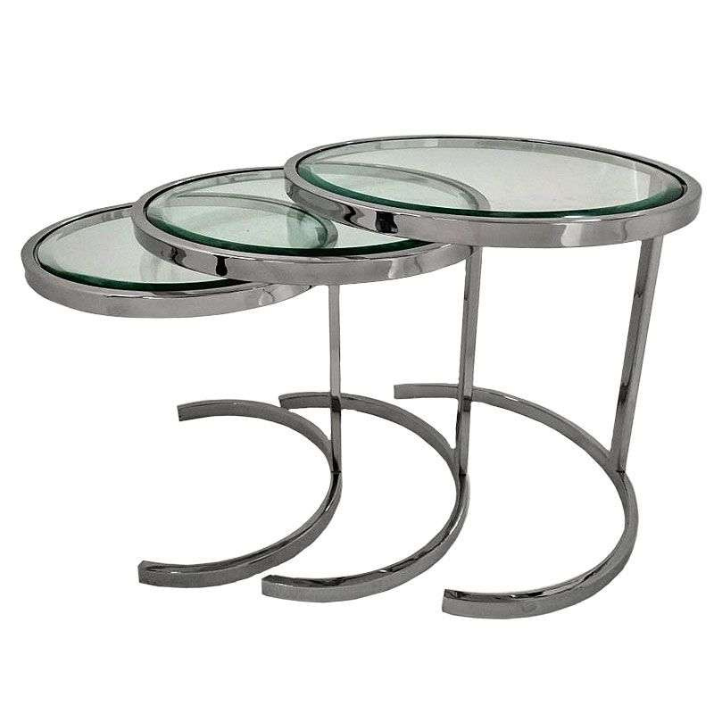• Stolik kawowy ze stali polerowanej, 3 elementy.