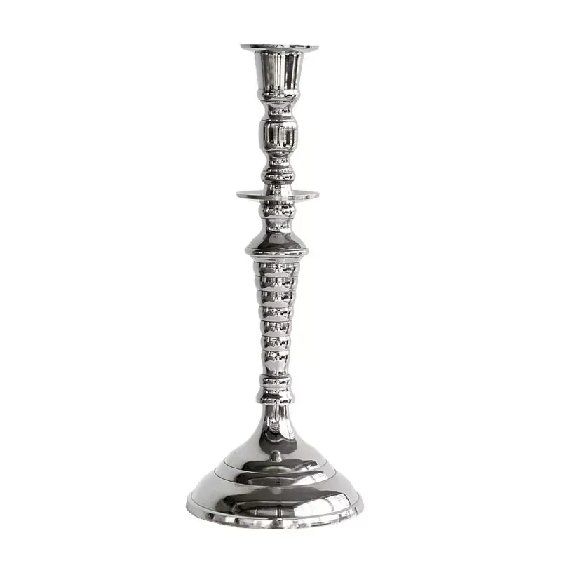 • Oryginalny świecznik wykonany z metalu w niklowanej powłoce..