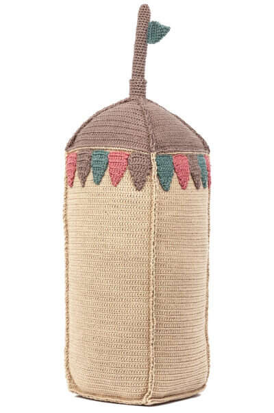 Duży bajkowy domek. Przenosi nas w świat wesołych miasteczek, w których są gabinety krzywych zwierciadeł, karuzele i kolorowe lampiony.  Można go wykorzystać do zabawy lub jako poduszkę. Dzięki swoim rozmiarom udekoruje  pokój dziecka.