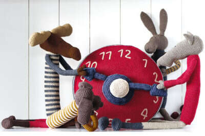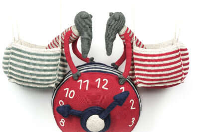 Wyjątkowa zabawka z kolekcji marki Hoa & Moa. Zegar ma unikalną i piękną estetykę i jest ruchomy- a to niespotykane wśród miękkich zabawek wykonanych z włóczki czy tkanin.