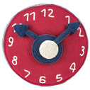 Zegar wyposażony jest w dwie oddzielnie poruszające się tarcze ze wskazówkami. Można ustawiać godzinę i minuty. Cały mechanizm obrotowy jest wykonany w włóczki bawełnianej. Nie zwiera elementów metalowych, plastykowych czy drewnianych.
