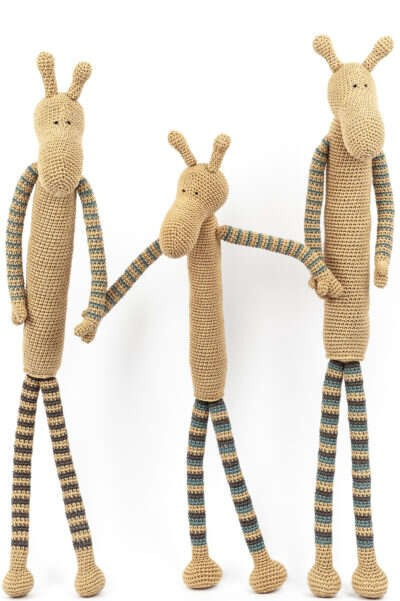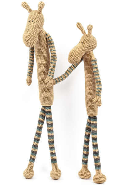 Żyrafa wykonana jest z włóczki bawełnianej 100%. Wypełnienie stanowi antyalergiczne włókno poliestrowe.