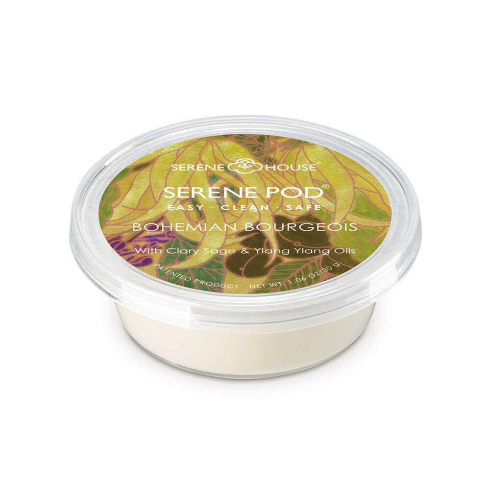 Podsy No Spill Wax Melt Pods marki Serene House to rewolucja w podgrzewaczach do wosku. Bohemian Borgeois to naturalny wosk sojowy z olejkami eterycznymi, szałwią muszkatołową i olejkami ylang-ylang