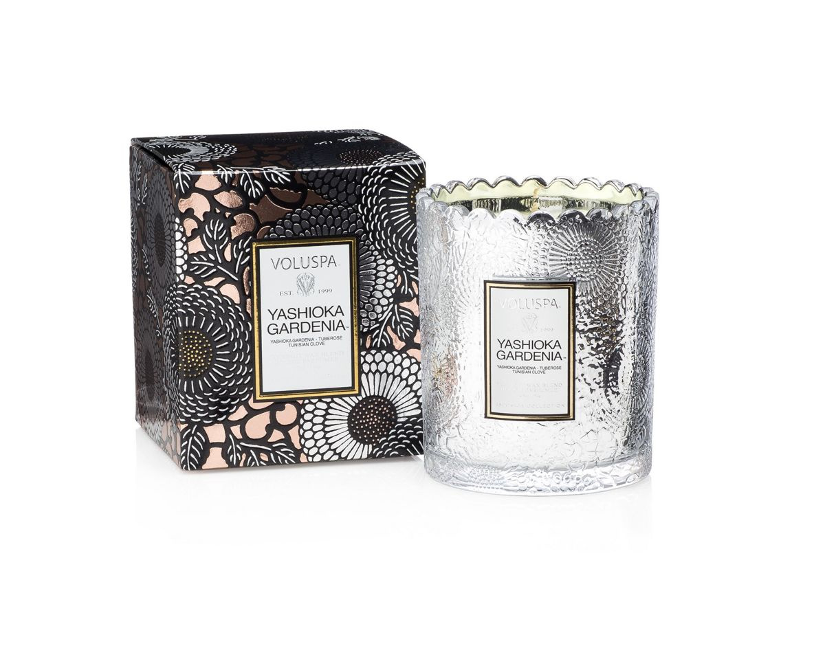 Sygnowana przez markę Voluspa świeca z kolekcji Japonica umieszczona jest w naczyniu wykonanym ze specjalnie zaprojektowanego, barwionego szkła. Wnętrze produktu kryje 176 gramów wosku o intensywnym aromacie w samym sercu dekoracyjnego opakowania zdobionego barwnym, metalicznym wzornictwem kolekcji Japonica.
