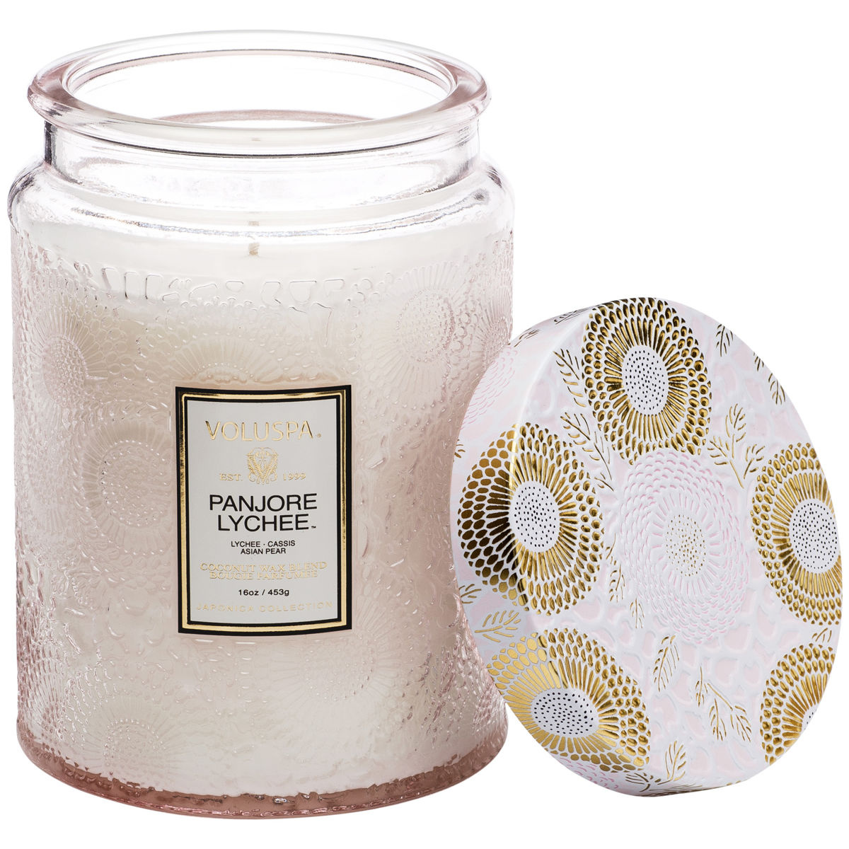 Nasz klasyczny wzór wytłaczanego szklanego słoika jest inspirowany japońską sztuką wytwarzania papieru. Piękne odcienie migoczą, gdy płomień rozświetla delikatne tłoczone motywy.