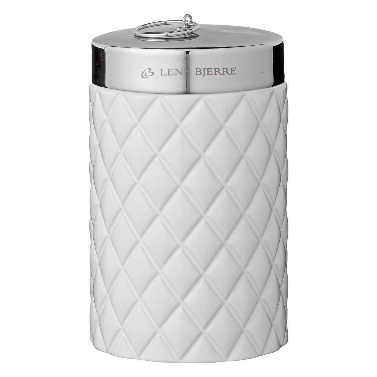 Ekskluzywny, biały ceramiczny słoik o wzornictwie harlequin i srebrnej pokrywie ze stopu cynku. Doskonale nadaje się do przechowywania niewielkich przedmiotów w łazience, gdzie będzie jednocześnie praktyczny i dekoracyjny. Użyj go do biżuterii, płatków bawełnianych, lub czegokolwiek chcesz.